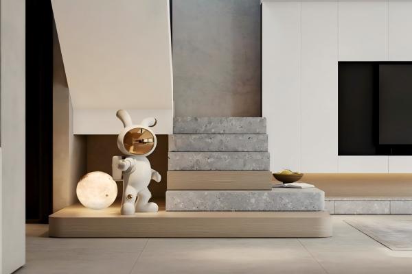 設計以現代輕奢為核心,融合自然材質與藝術造型,通過米白基底搭配木飾面、墨綠大理石營造質感層次,弧形沙發與藝術感座椅形成視覺碰撞,借通透采光與簡約線條,打造出兼具舒適感與高級感的當代輕奢居住空間。