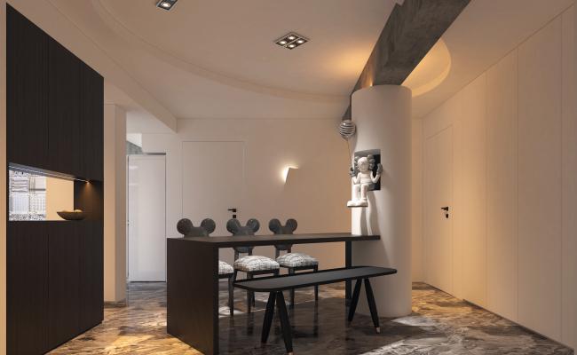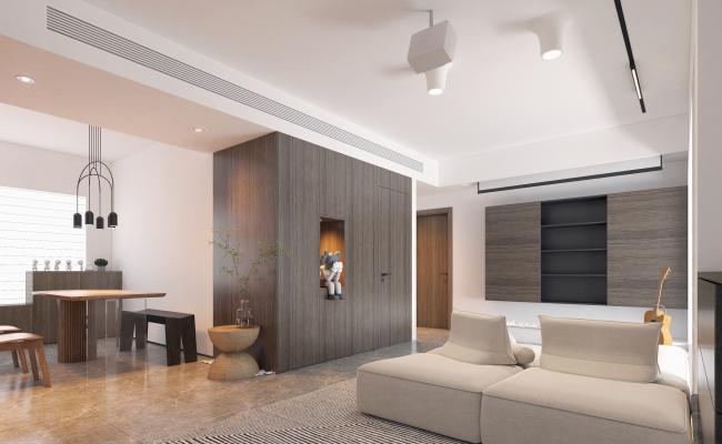 業(yè)主是建安集團(tuán)廣州穗龍公司董事長(zhǎng),這套房主要考慮自住,要求低調(diào)內(nèi)斂的奢華,突出品質(zhì)感,不浮夸,所以針對(duì)業(yè)主的年齡階段和審美層次,選擇了新中式作為風(fēng)格表達(dá)