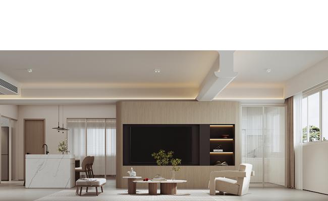 本空間以「復(fù)古與現(xiàn)代共生」為設(shè)計(jì)內(nèi)核,將法式線條的優(yōu)雅與現(xiàn)代簡(jiǎn)約的實(shí)用相融。深棕木調(diào)打底,搭配人字拼地板與石膏雕花頂,勾勒溫潤(rùn)質(zhì)感;大理石、長(zhǎng)虹玻璃等材質(zhì)碰撞,弱化空間邊界。鋼琴區(qū)與客餐廚一體化布局,在保留古典韻味的同時(shí),用簡(jiǎn)潔的柜體、柔和的燈光營(yíng)造松弛感,讓復(fù)古風(fēng)情落地于當(dāng)代生活。