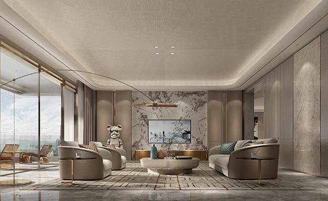 該項目位于廣州花都美林湖畔的獨棟別墅,原建筑室內500平,改建后面積700平,在空間設計上,主張“流動感”與“開放性”。客餐廳采用一體化布局,無界過渡打破視覺局限,搭配大面積落地窗引入自然光線,讓光影成為空間的動態裝飾,與室外景觀形成虛實呼應。臥室以“靜謐舒適”為要義,簡化造型語言,通過材質碰撞營造層次——柔軟織物中和硬朗線條,溫潤木飾面平衡冷調石材,構建兼具包裹感與呼吸感的休憩場域。