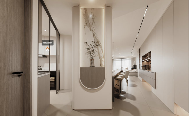 本案以木和白為底,空間營(yíng)造了一種溫暖且豐盈的留白,讓生活有自行“生長(zhǎng)”的余地。
