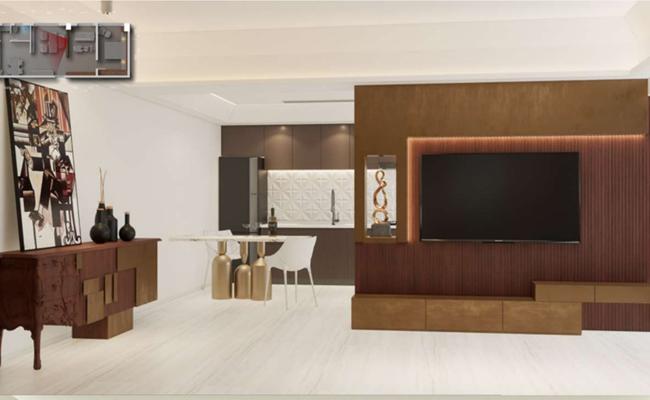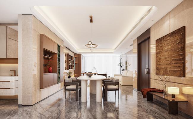 深色木作奠定穩(wěn)重基調(diào),青綠石材成為視覺焦點(diǎn),銅元素如影隨形,在大平層內(nèi)演繹出一場經(jīng)典與當(dāng)代交融的老錢風(fēng)范。