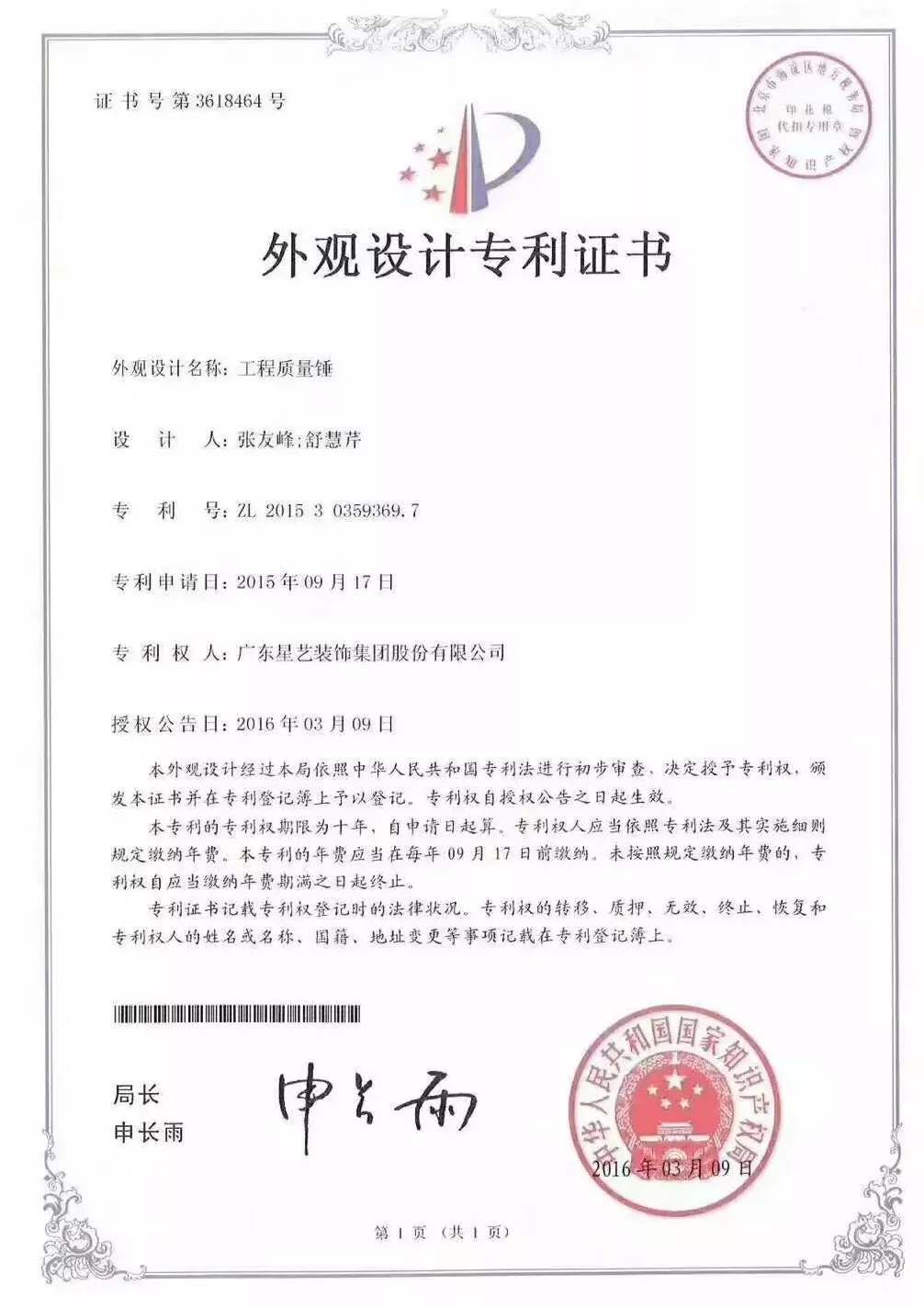 (星藝專利●工程質量錘)