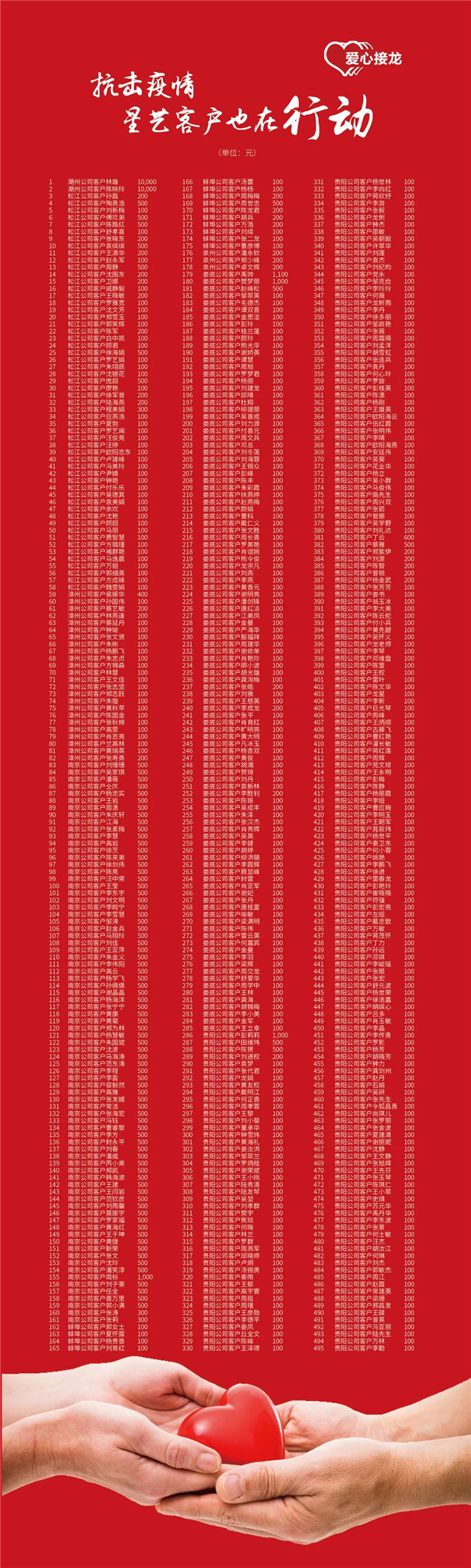 感謝每一位為愛“接龍”的星藝客戶