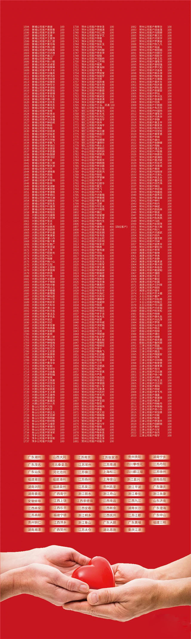 九江公司17位客戶捐款1,700元