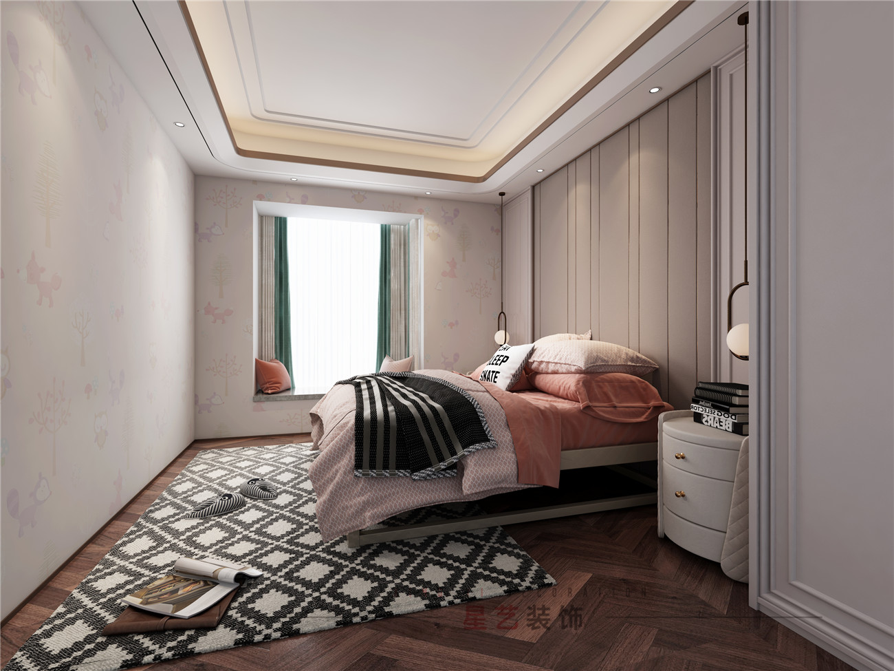 實景圖用暖色的燈光營造出了溫馨舒適的環境,讓忙碌了一天的業主回到家就可以在這樣的環境中快速進入夢鄉。