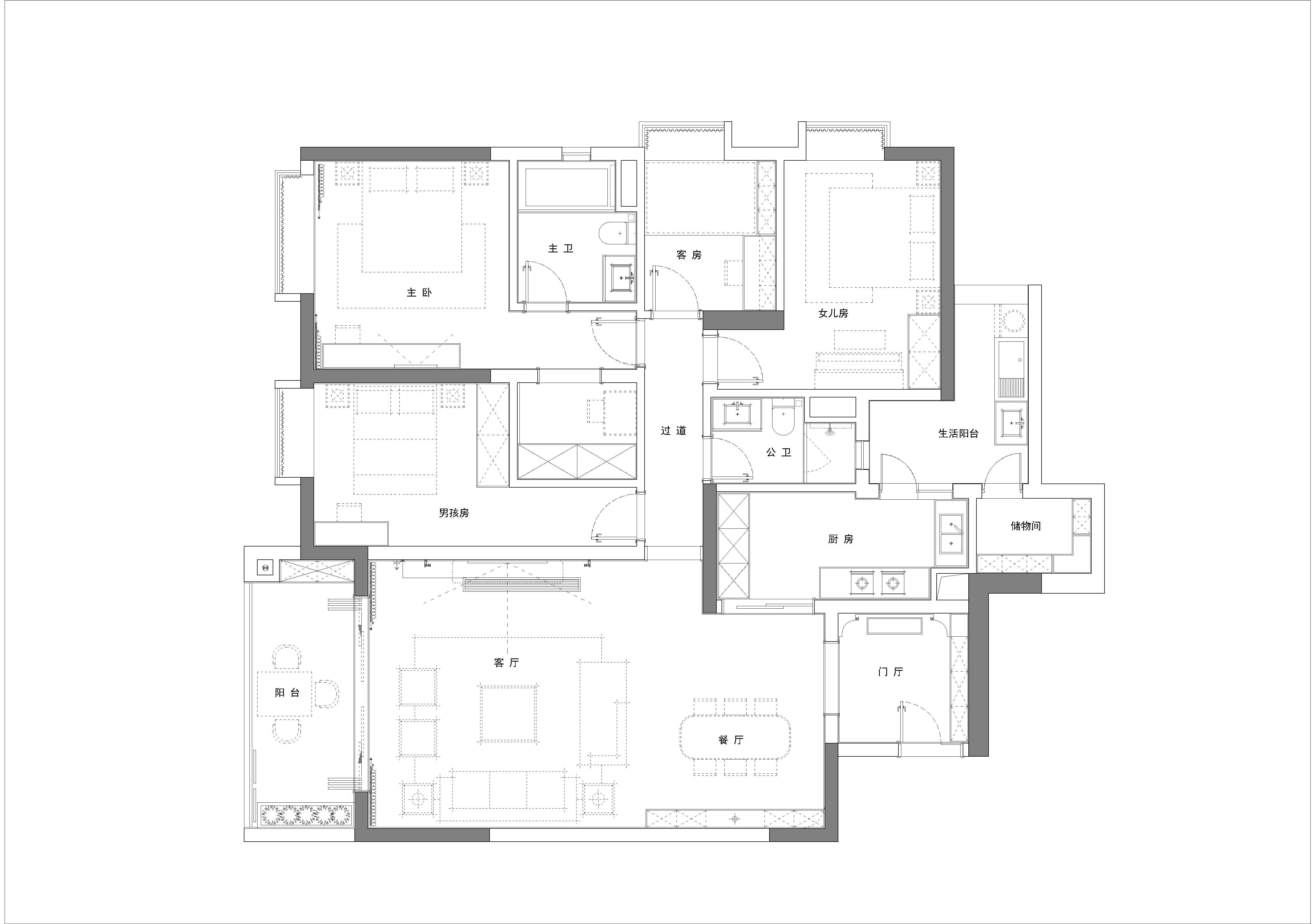 本案地處繁華的鬧市,但業主本人喜靜,也喜歡低調有質量的生活,所以本案的主要設計方向是豪華但不張揚,講品質但不夸張。首先就采用了出水芙蓉,大氣而不夸張的手法處理每個空間上的細節,不管是入戶的玄關,還是客廳臥室,都盡可能把握品質,追求細節,營造出浪漫有情調,有品質的安寧生活,享受芙蓉帶來的清新安寧,卸去塵世的繁華喧囂。