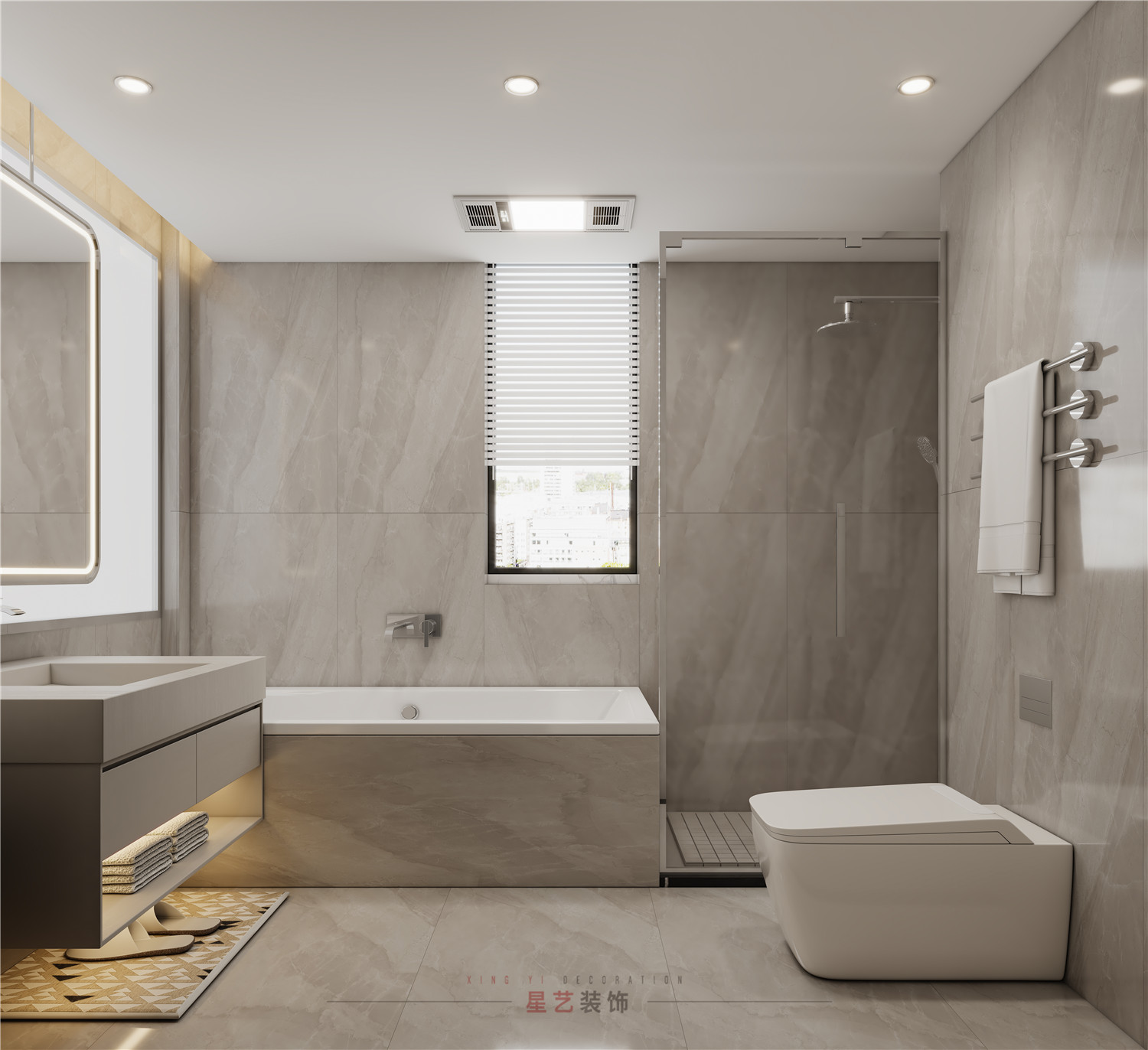 時(shí)尚的現(xiàn)代簡(jiǎn)約衛(wèi)生間,強(qiáng)調(diào)的是去繁留簡(jiǎn),合理劃分區(qū)域。墻面與地板瓷磚一致,以大理石紋為肌理,干凈大方,柔軟的亮堂潔凈感觸,一直也是呈現(xiàn)時(shí)髦簡(jiǎn)約的好顏色調(diào)配。