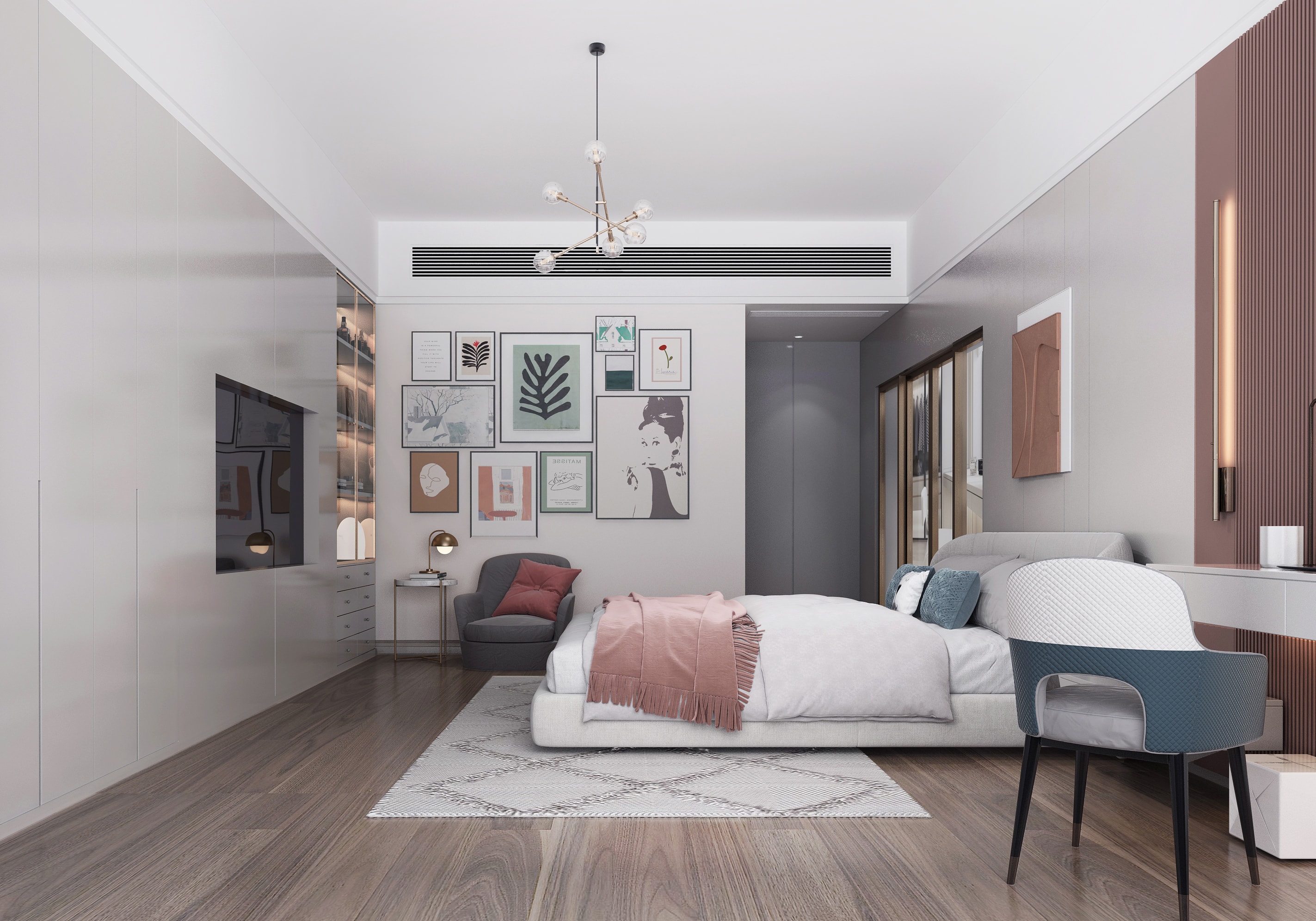 低飽和度的粉色和藍(lán)色的兒童房,沒有繁復(fù)的線條和切割造型,只在細(xì)節(jié)處做好陳設(shè),尊重時(shí)間、尊重成長。